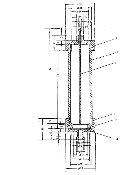 1-蓋(有機玻璃或聚四氟乙烯);2-液槽(有機玻璃或聚四氟乙烯);3-陽極(鉑金絲φ1.5);