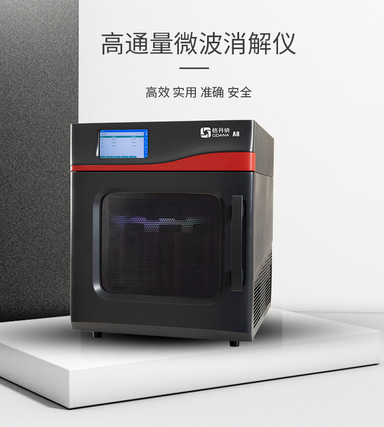 格丹納A8微波消解儀具有高效、實用、準確安全的前處理設備,是輔助AAS、AFS、ICP、ICP-MS元素分析和GC、HPLC、GCMS等分析前消解的好幫手,20分鐘內完成大部樣品的處理,如消解、萃取、蛋白水解、濃縮、干燥和有機合成等。