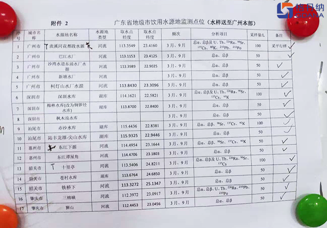 (廣東省地級市水源地測試點)