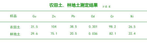 實際樣品農(nóng)田土、林地土測定結(jié)果
