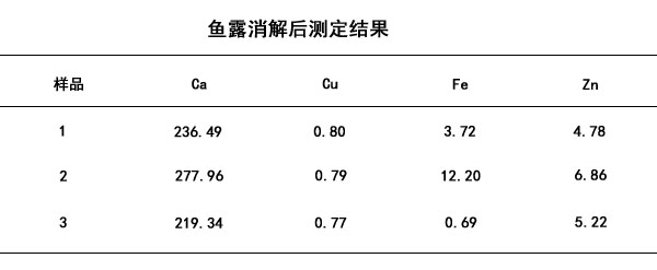 將三種品牌魚露通過上述的消解步驟進(jìn)行前處理得出結(jié)果如下列表格所示。